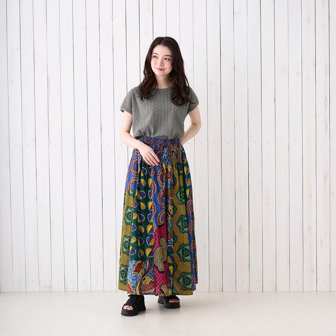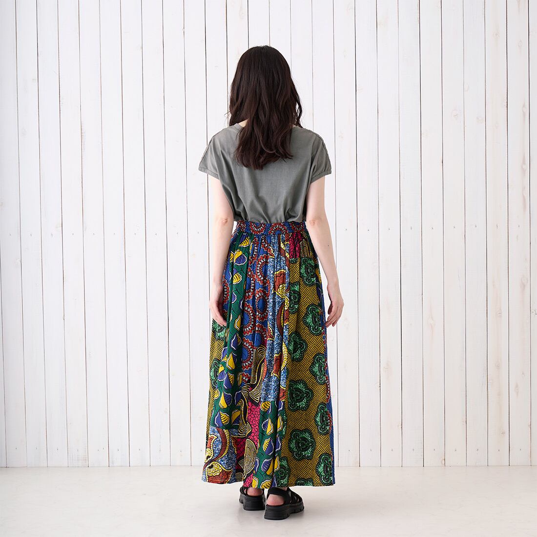 お洒落で個性的なアフリカン柄が目を引くロングスカートです。