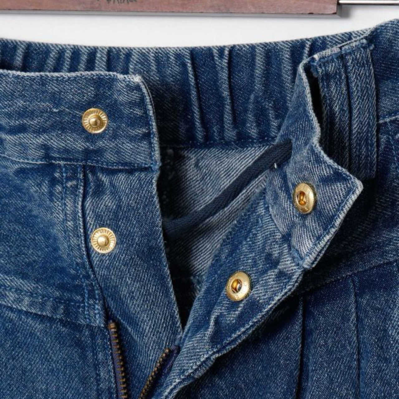 タックを取ったウエスト部分やカットオフ仕様の裾でヴィンテージ感を演出。