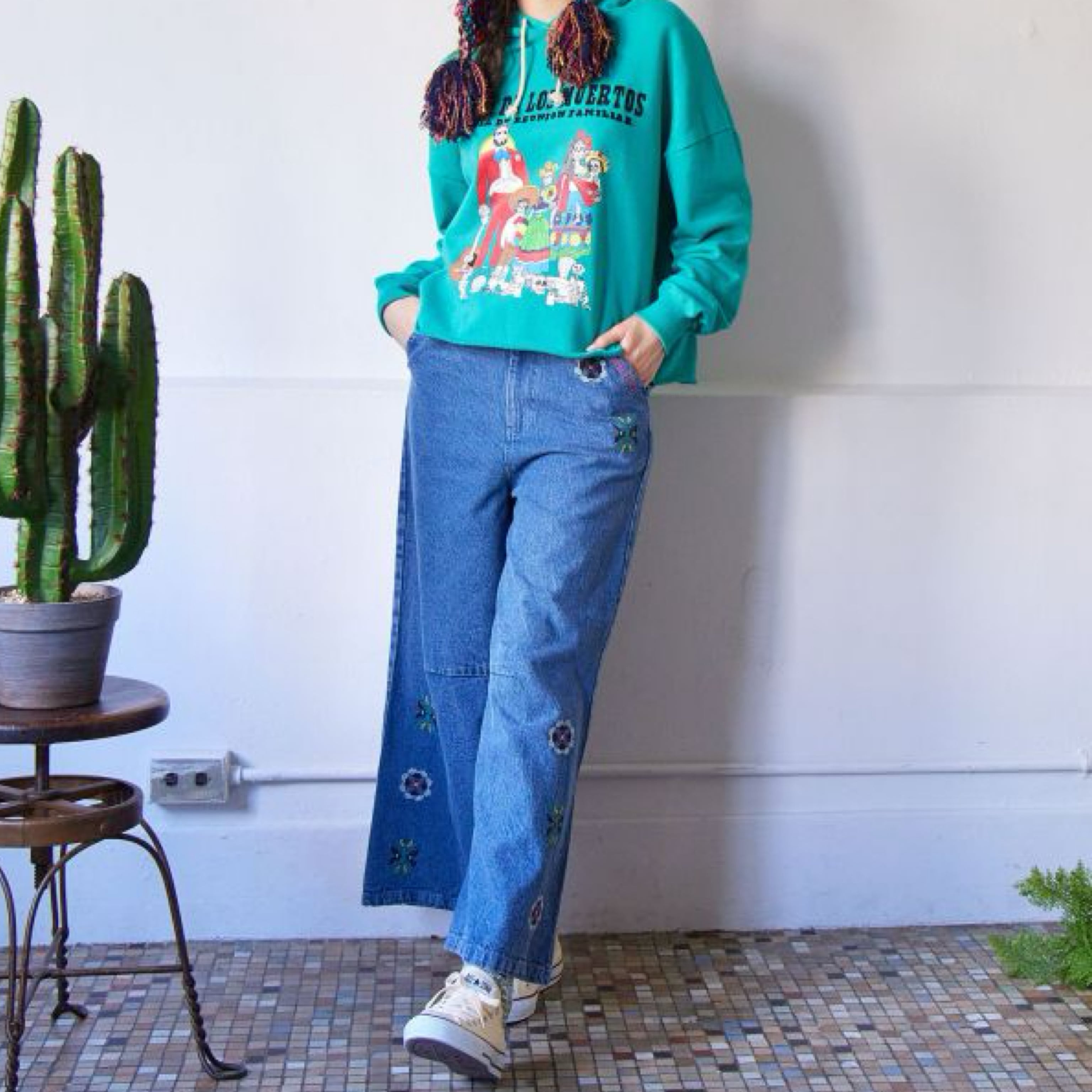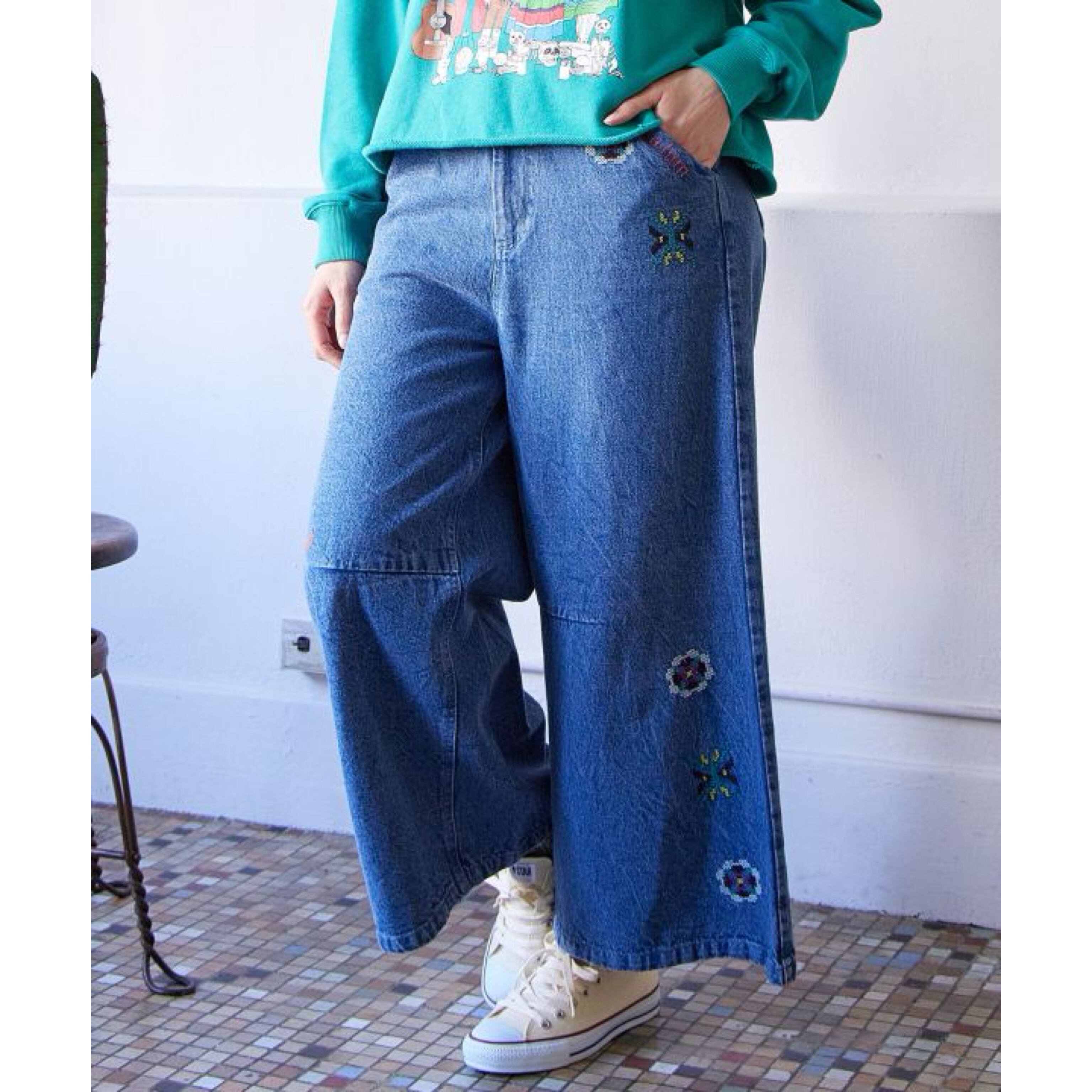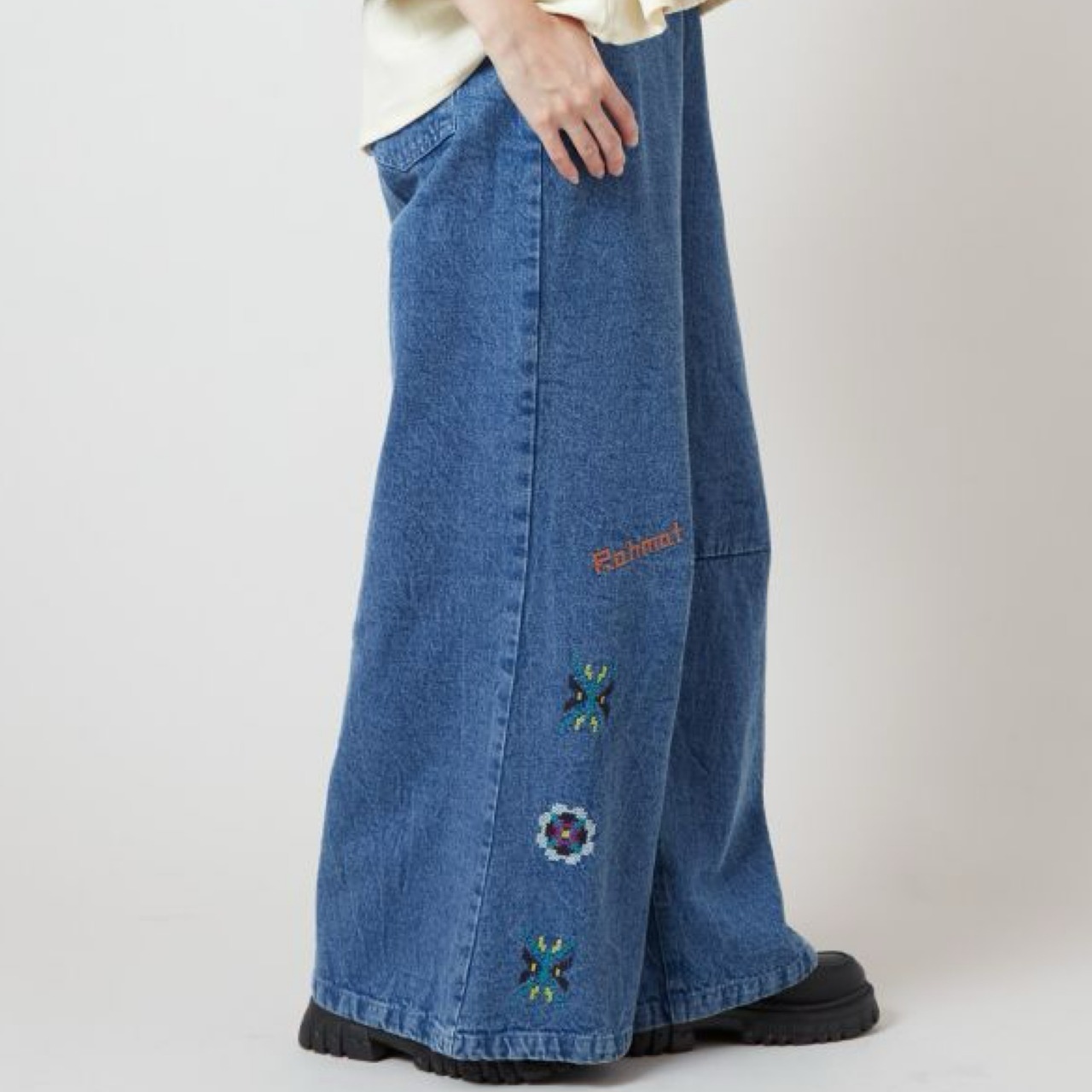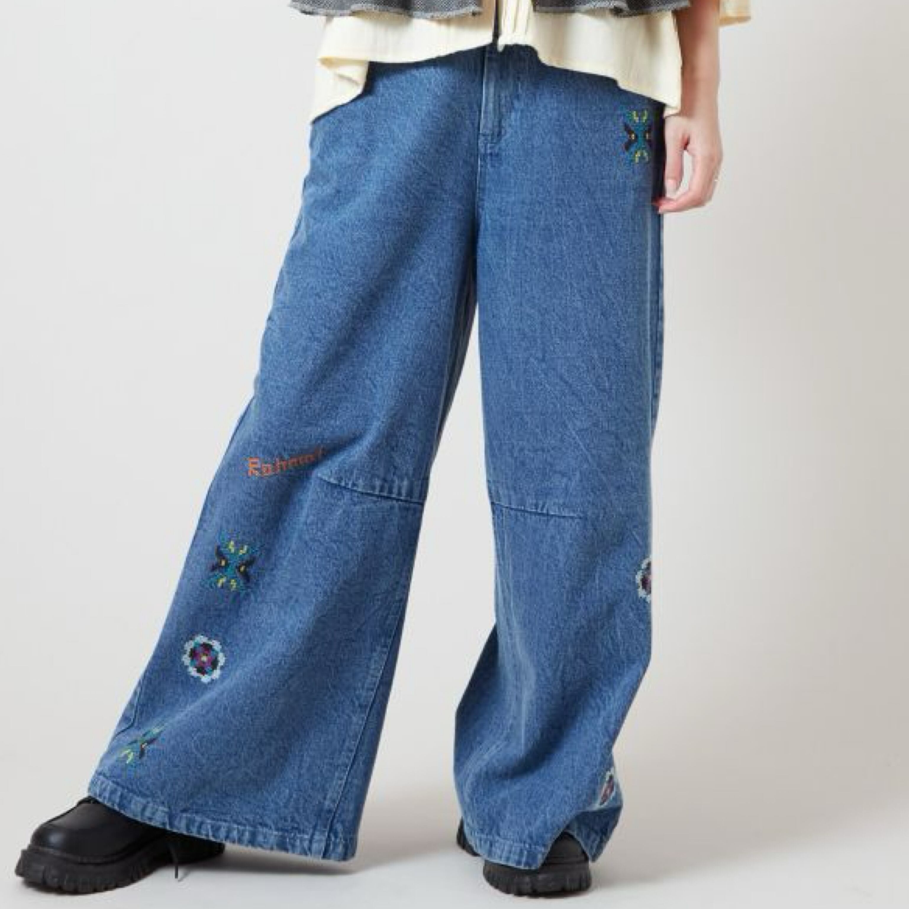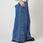 ウズベキスタン刺繍 デニム ベルボトルパンツ