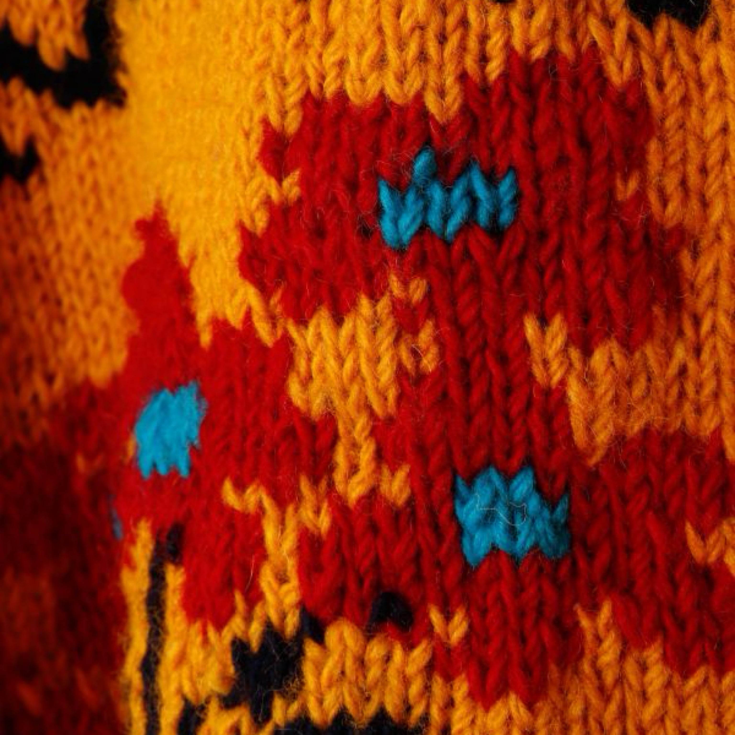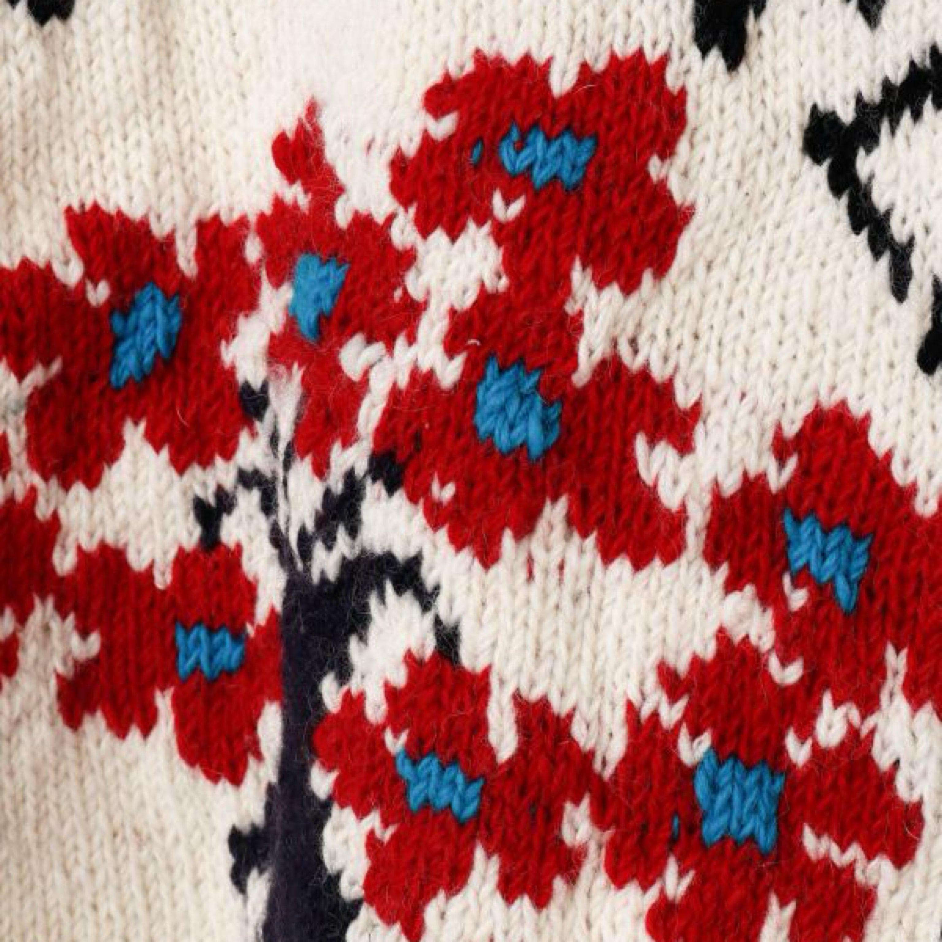 大胆に編まれた花の柄が目を引く一枚。