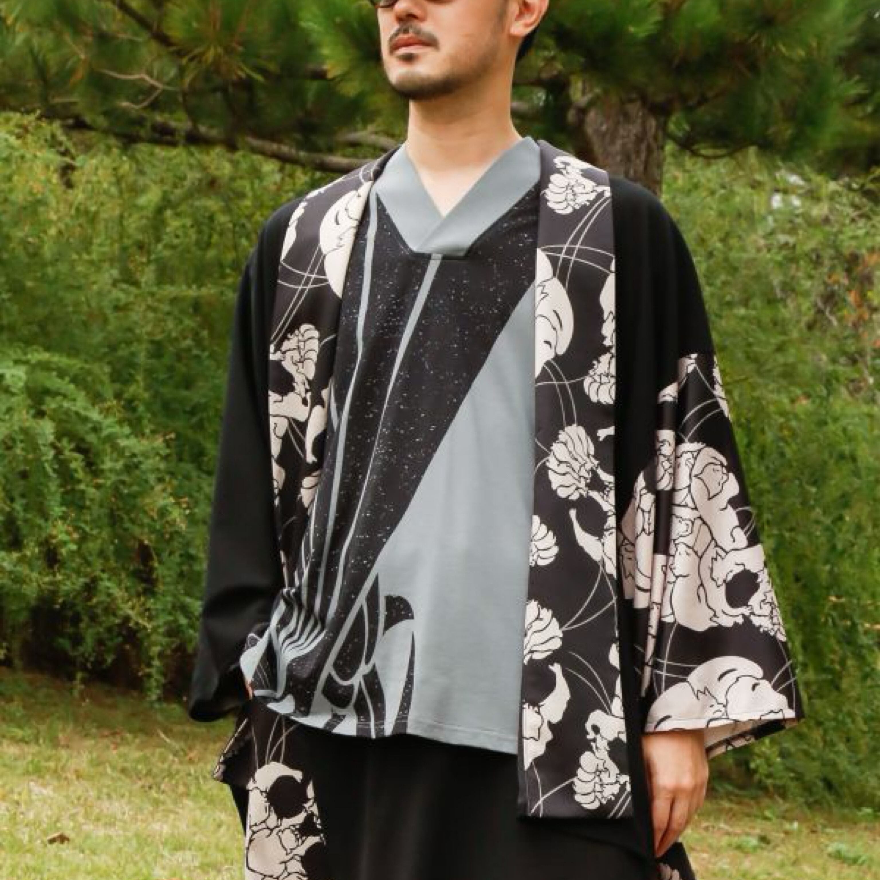 浮世絵の伊達男が着ていた着物柄をモチーフにしたメンズ羽織。