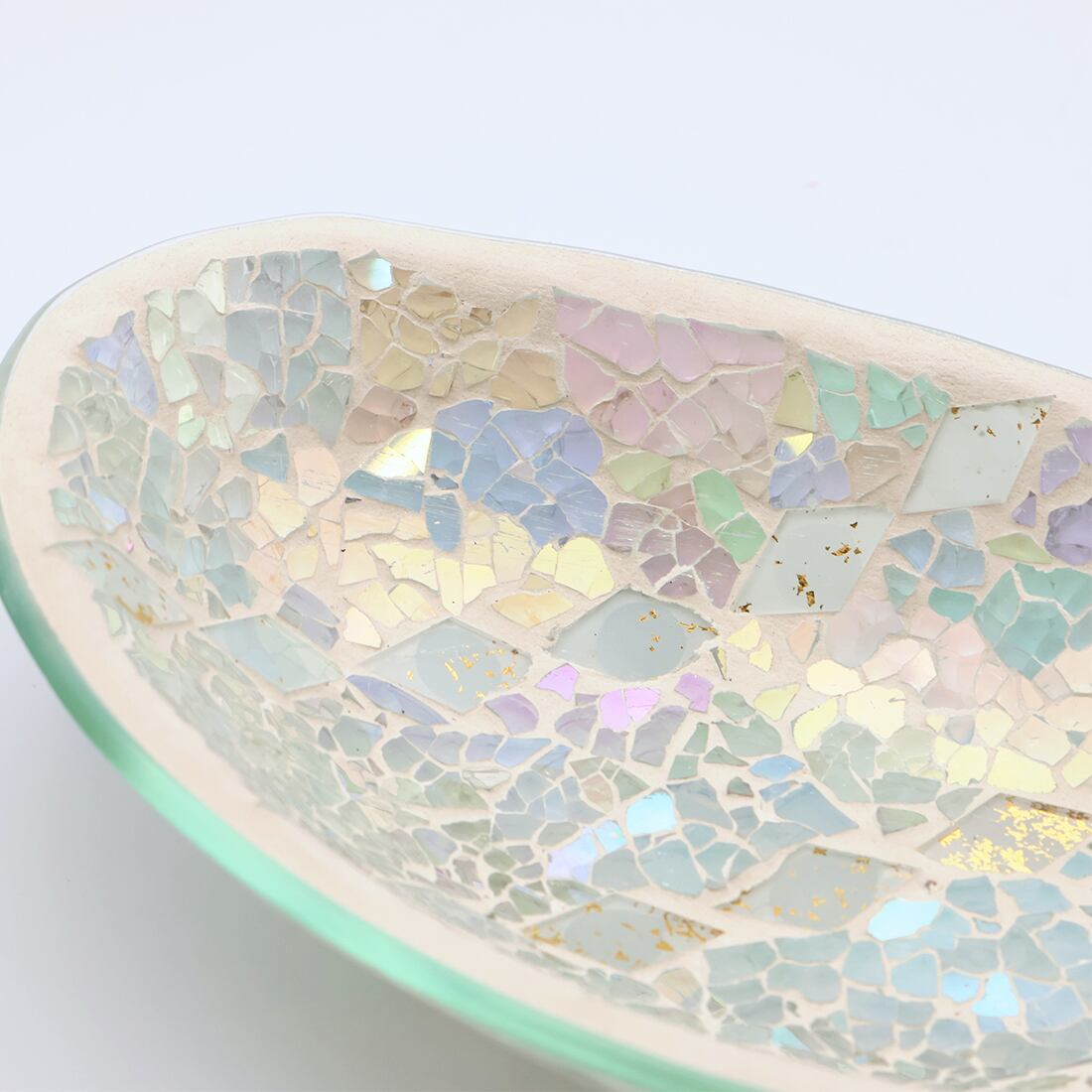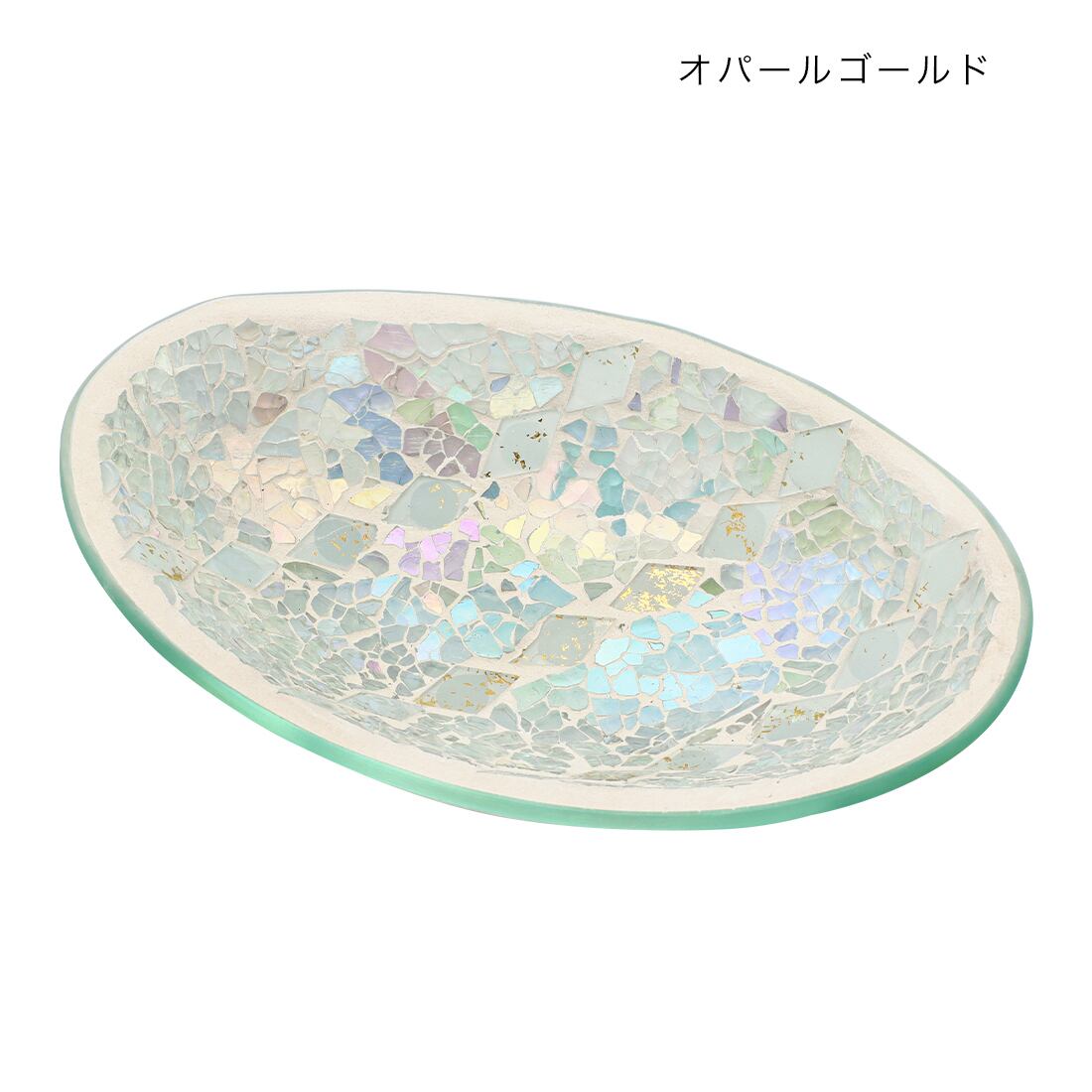 ガラス トレイ 楕円 モザイク オブジェ