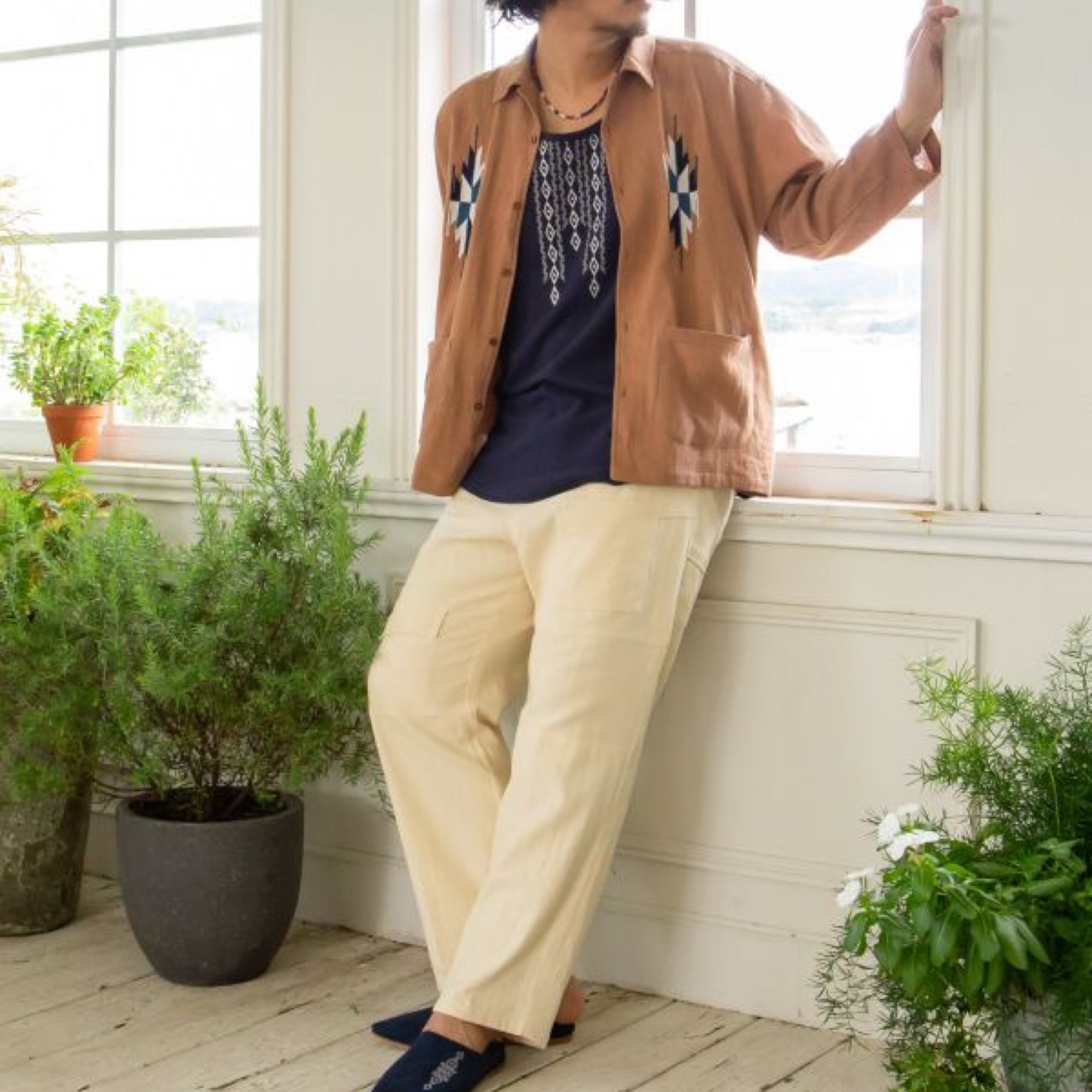 ネイティブアメリカン刺繍 メンズシャツ