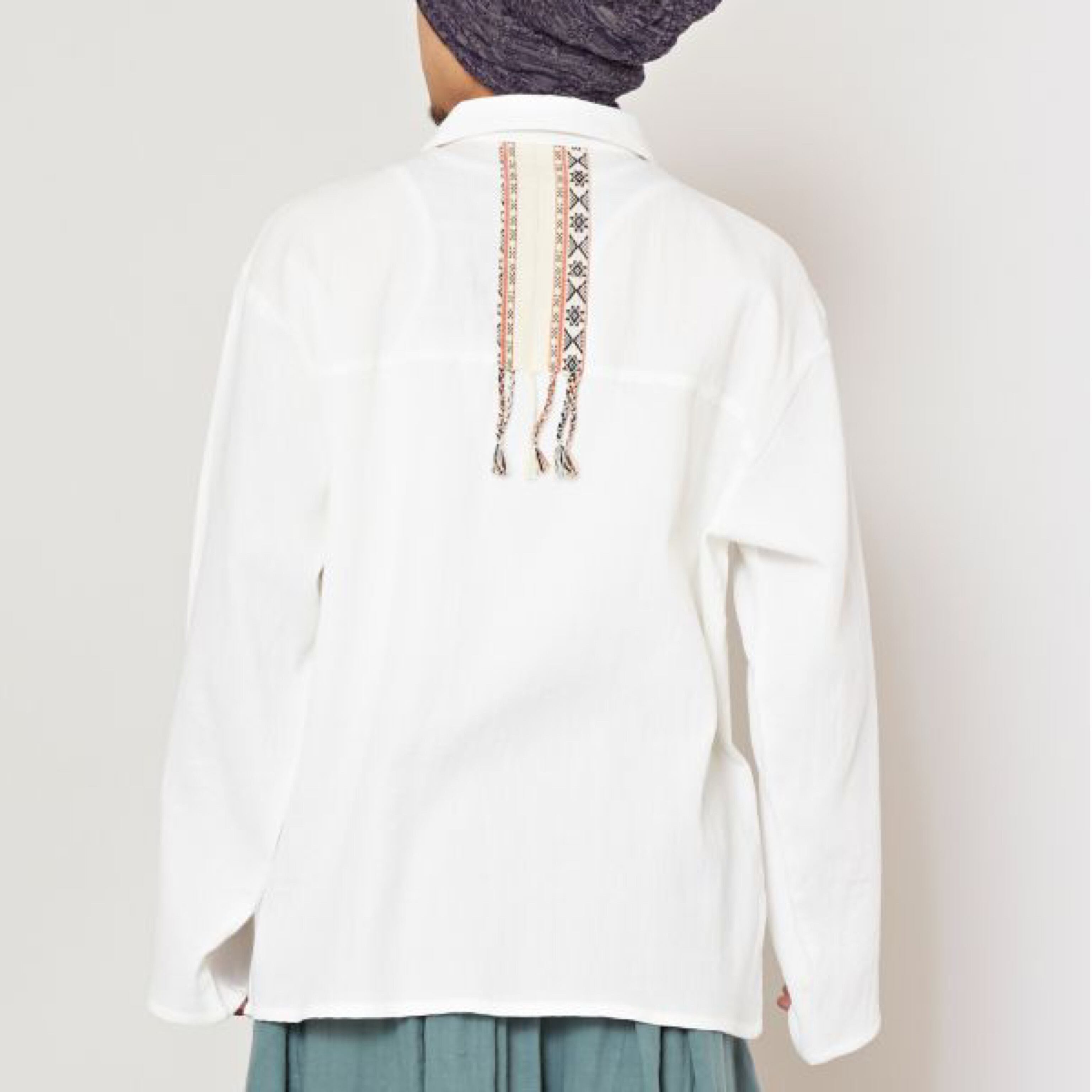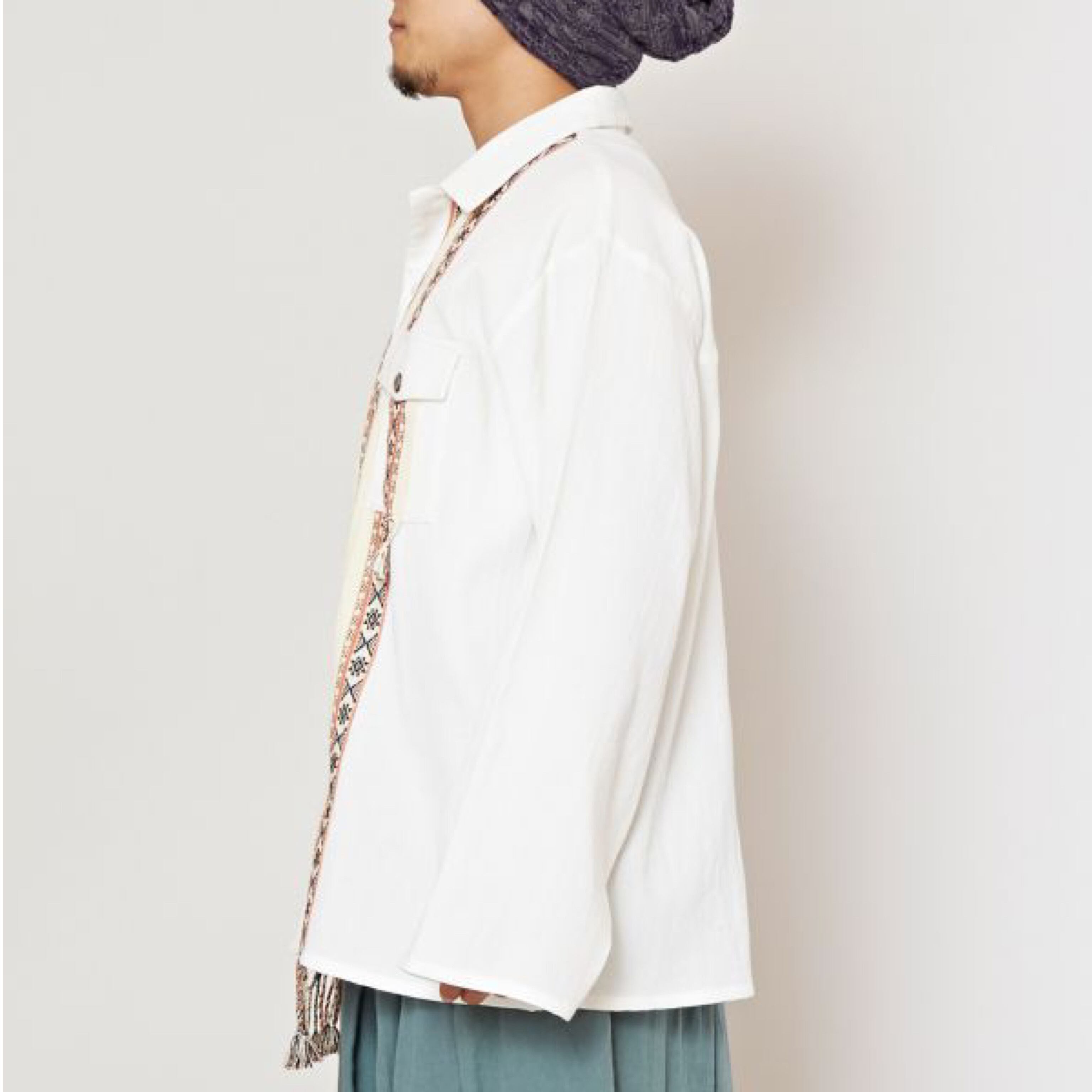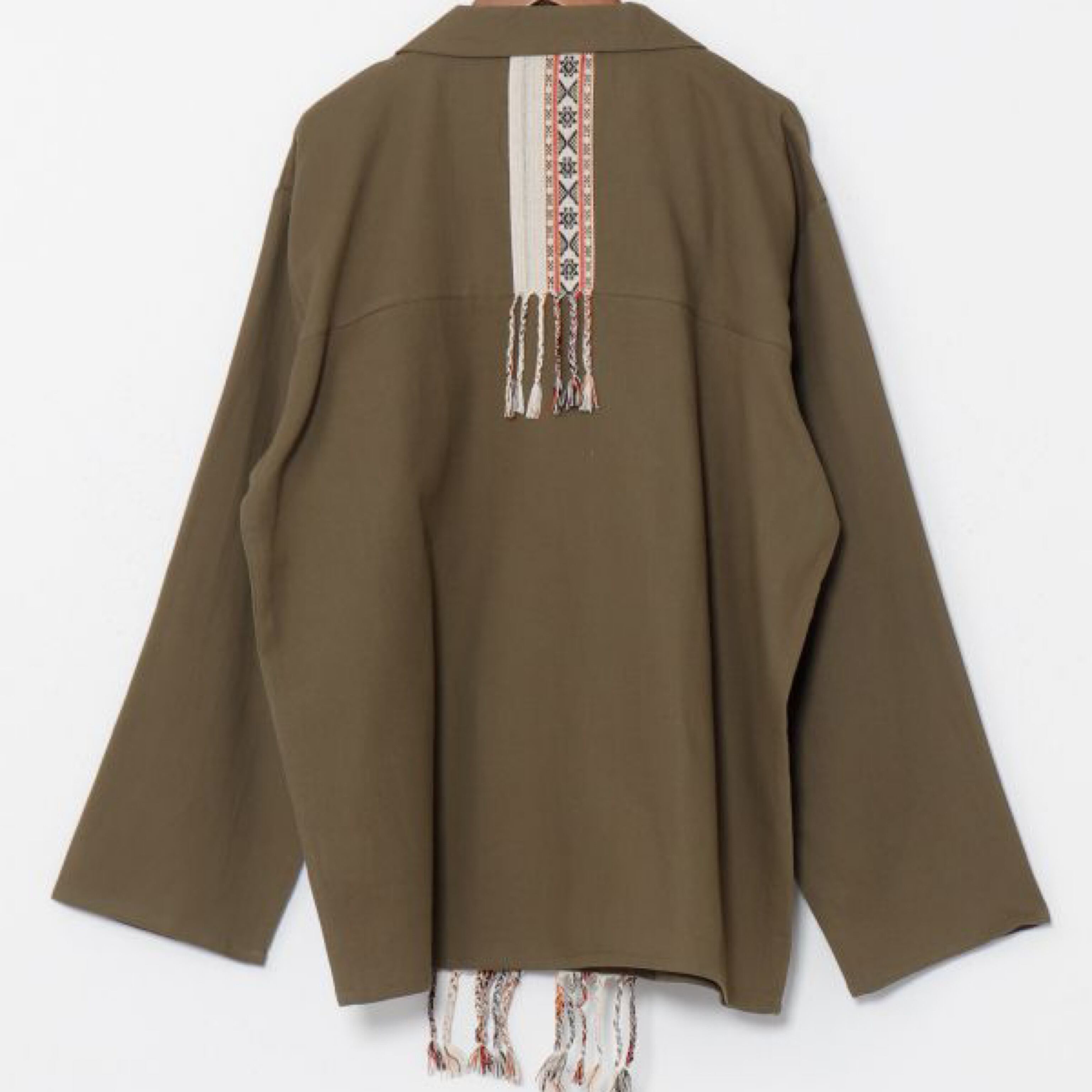 揺れる三つ編みフリンジと身頃に配置したイカット生地がインパクト大。