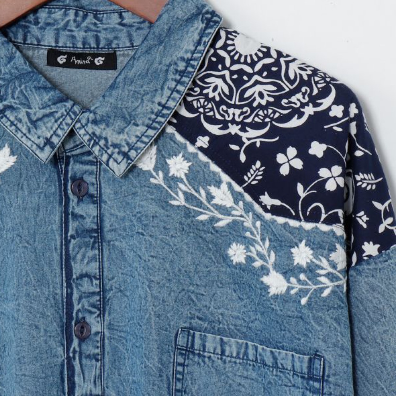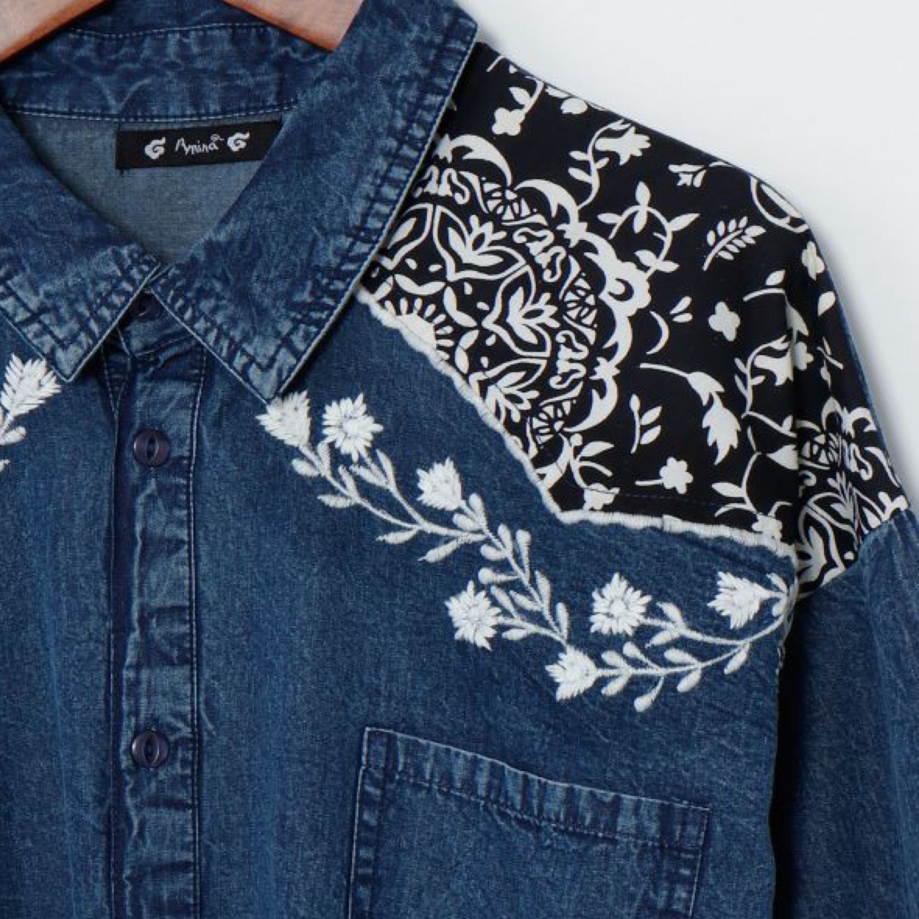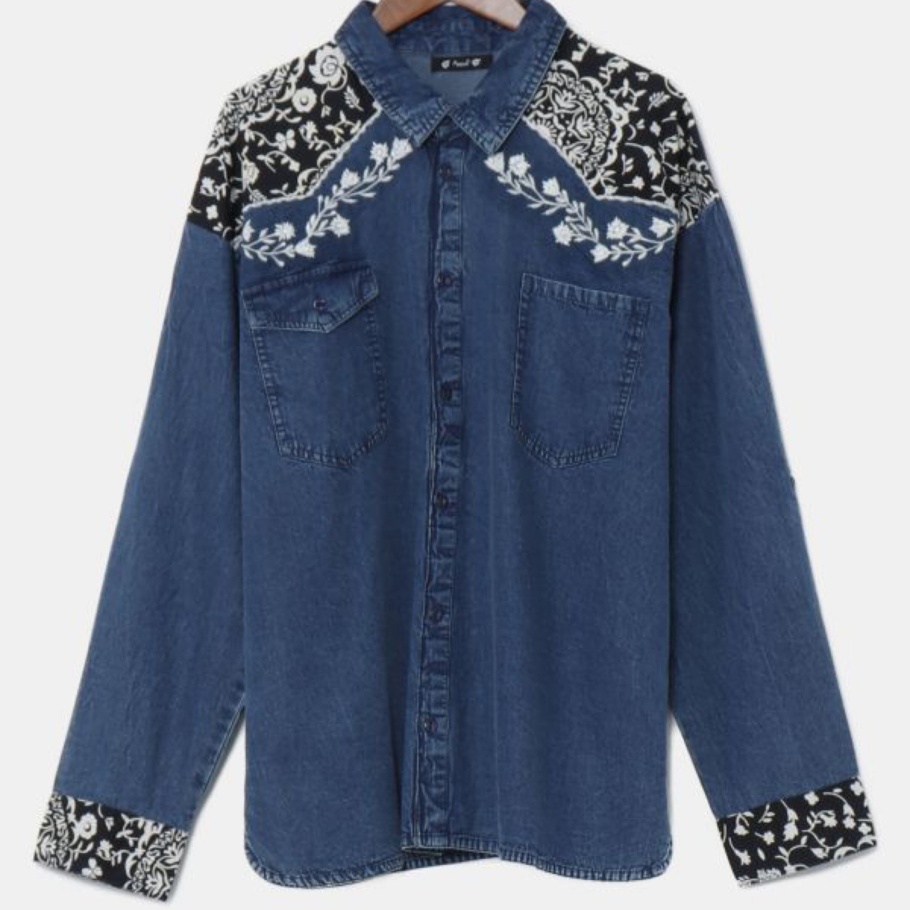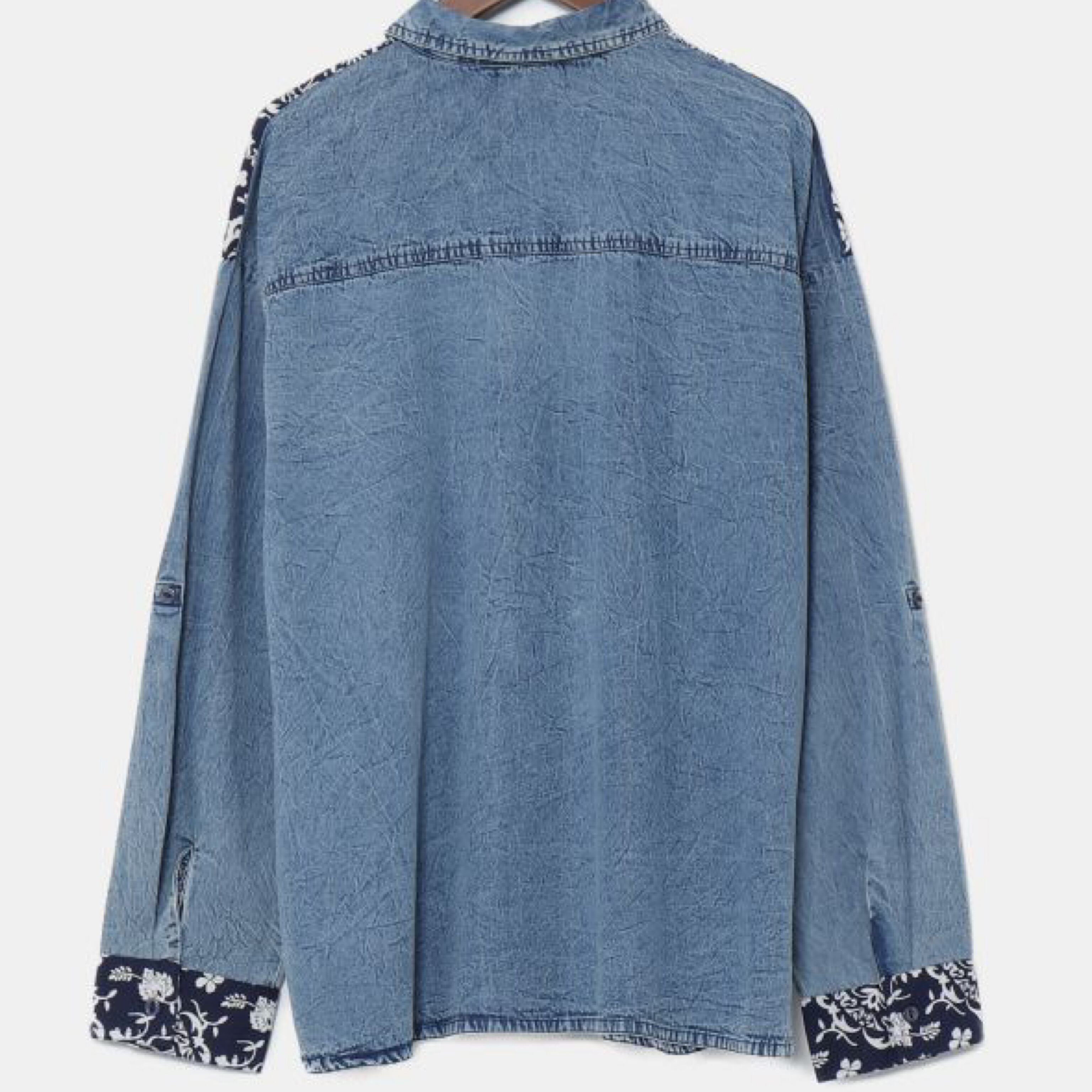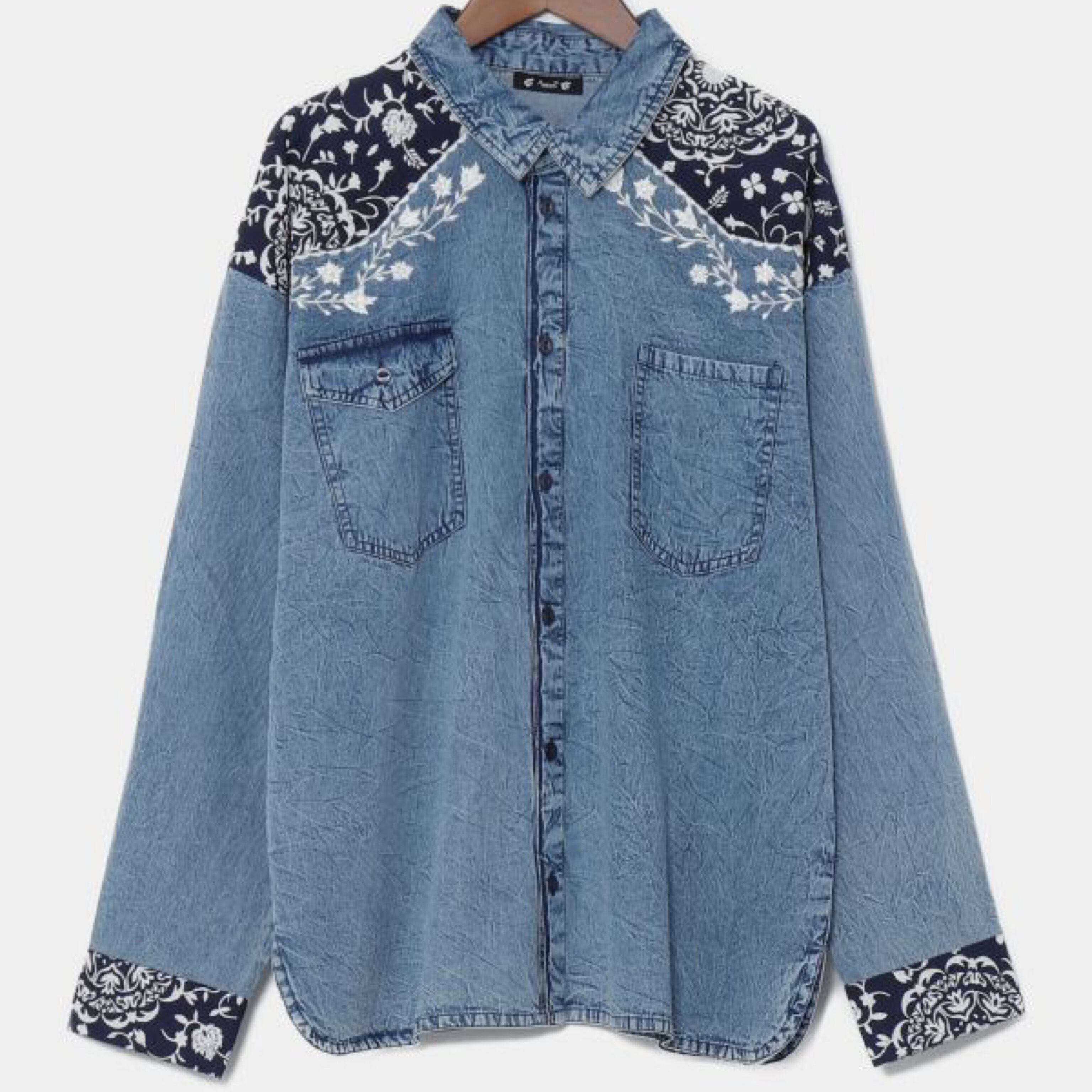ボタニカル刺繍 デニム風シャツ