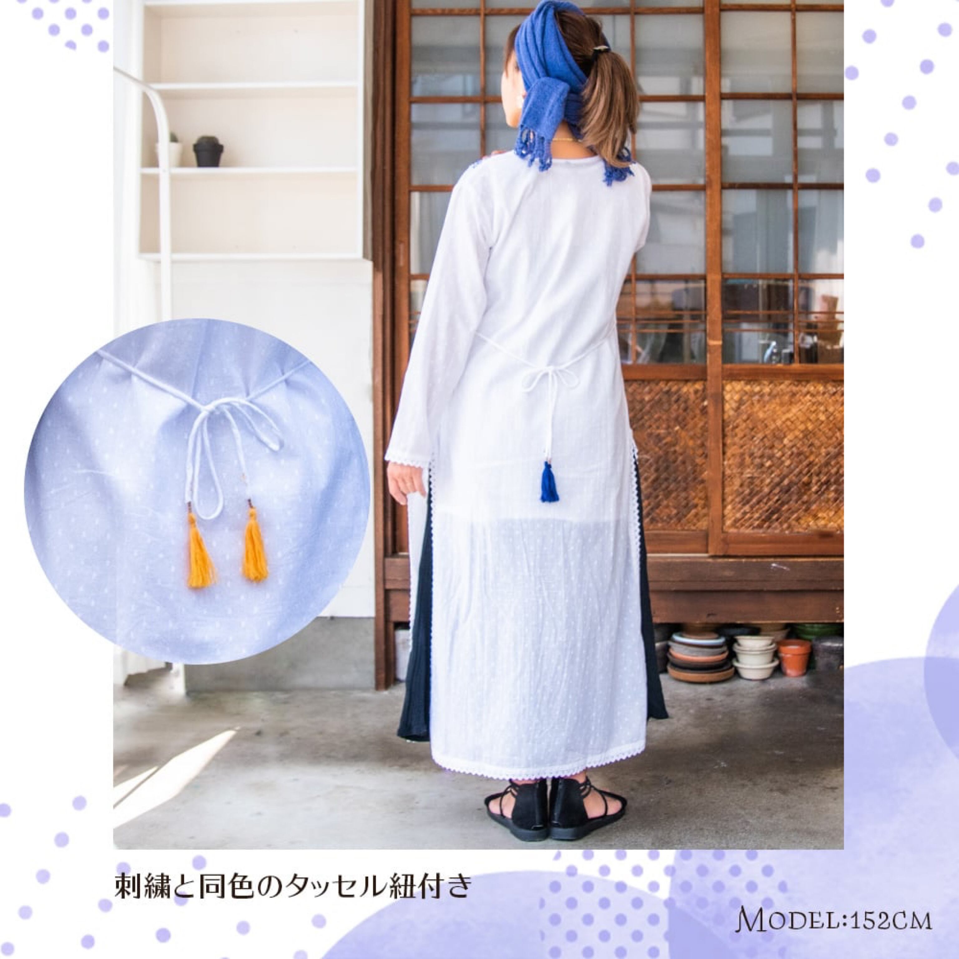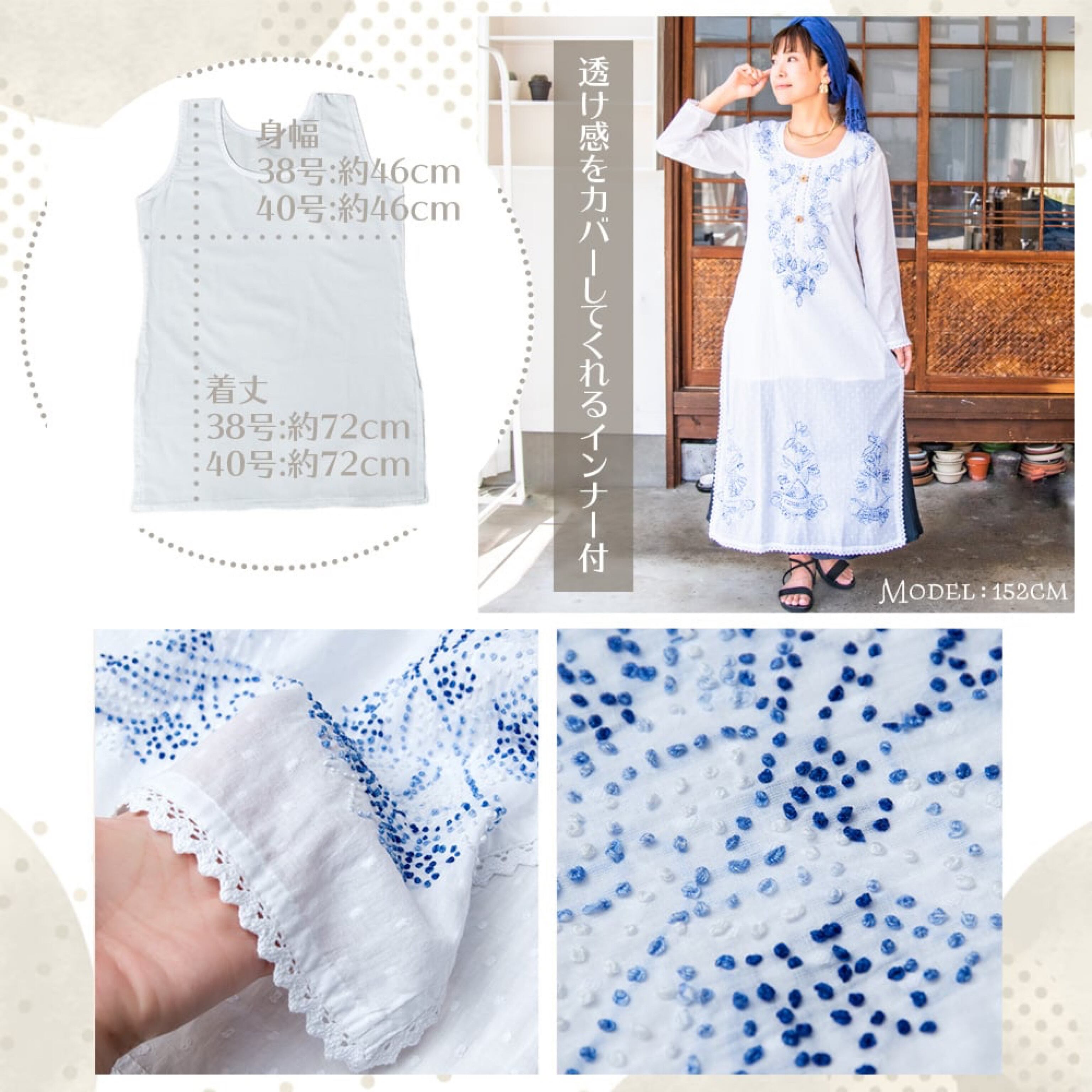 薄手のコットン素材なので、どうしても透けが心配になってしまいますが、そんな心配を一掃してくれる嬉しいインナー付きです。