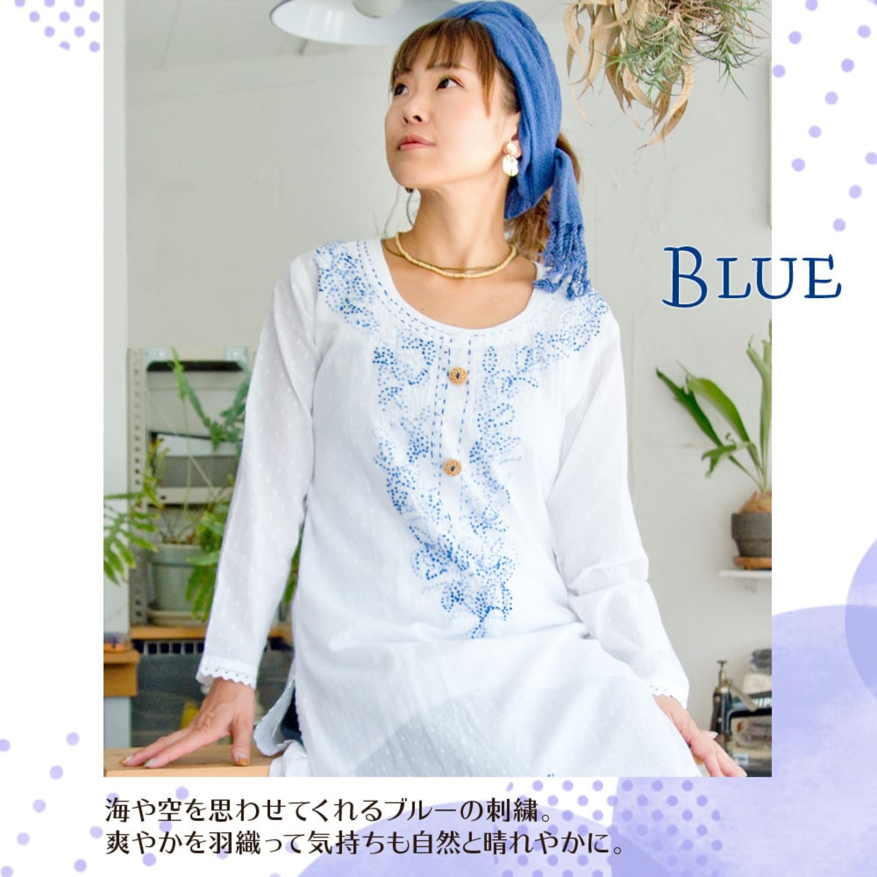 ホワイトドット生地の刺繍クルティ