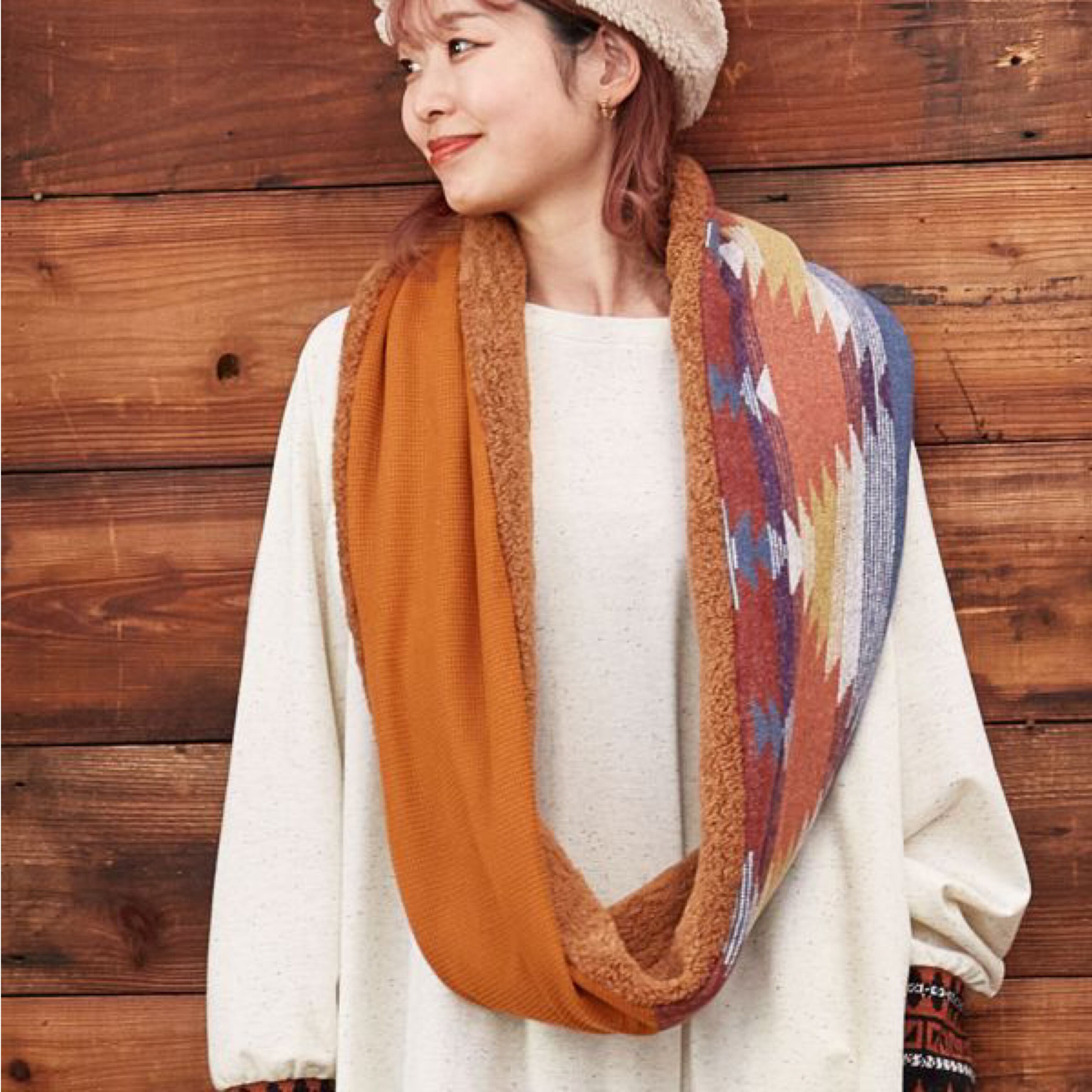 カジュアルな柄とサーマル生地が遊び心のあるスヌード。