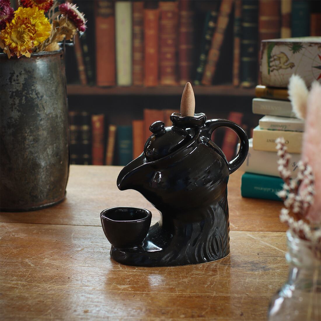 ポットからティーカップにお茶が注がれるように煙が流れ落ちるお香立て。
