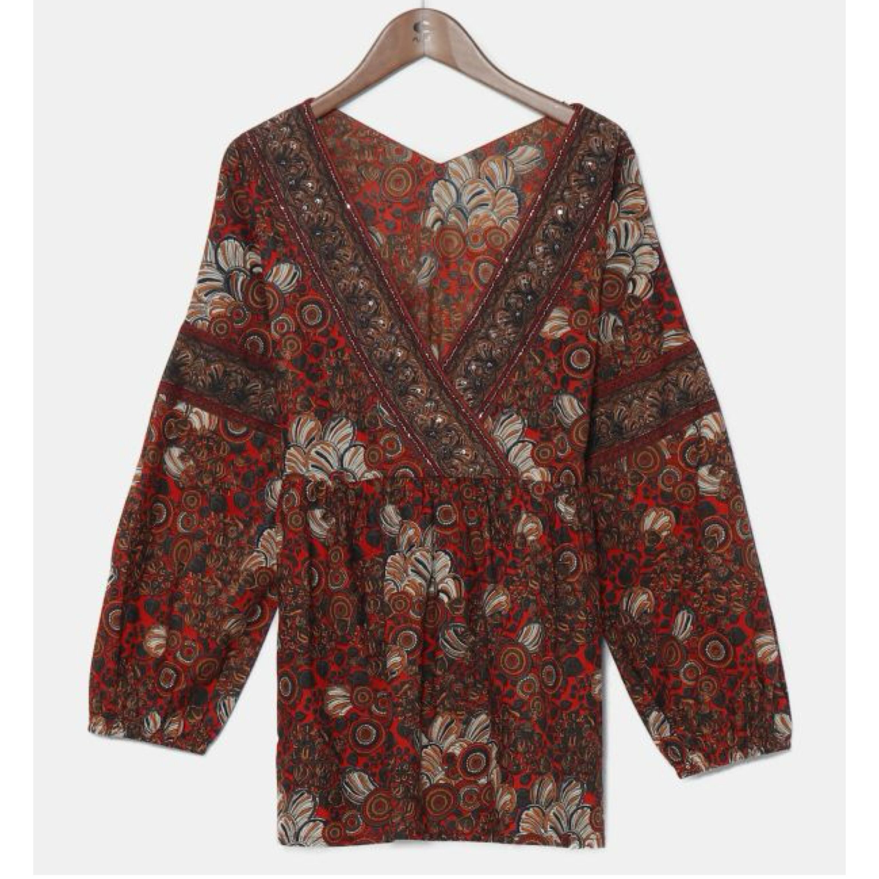 ボタニカル ペイズリー フラワー ビーズ スパンコール チュニック カットソー 体型カバー インド アジアン チャイハネ