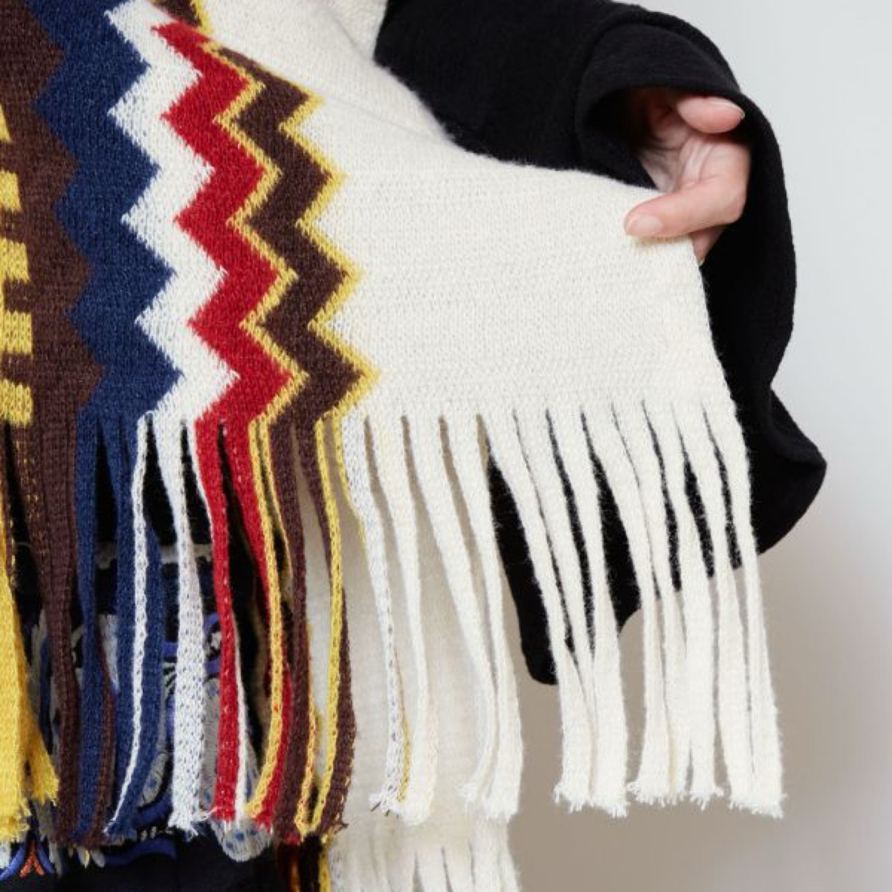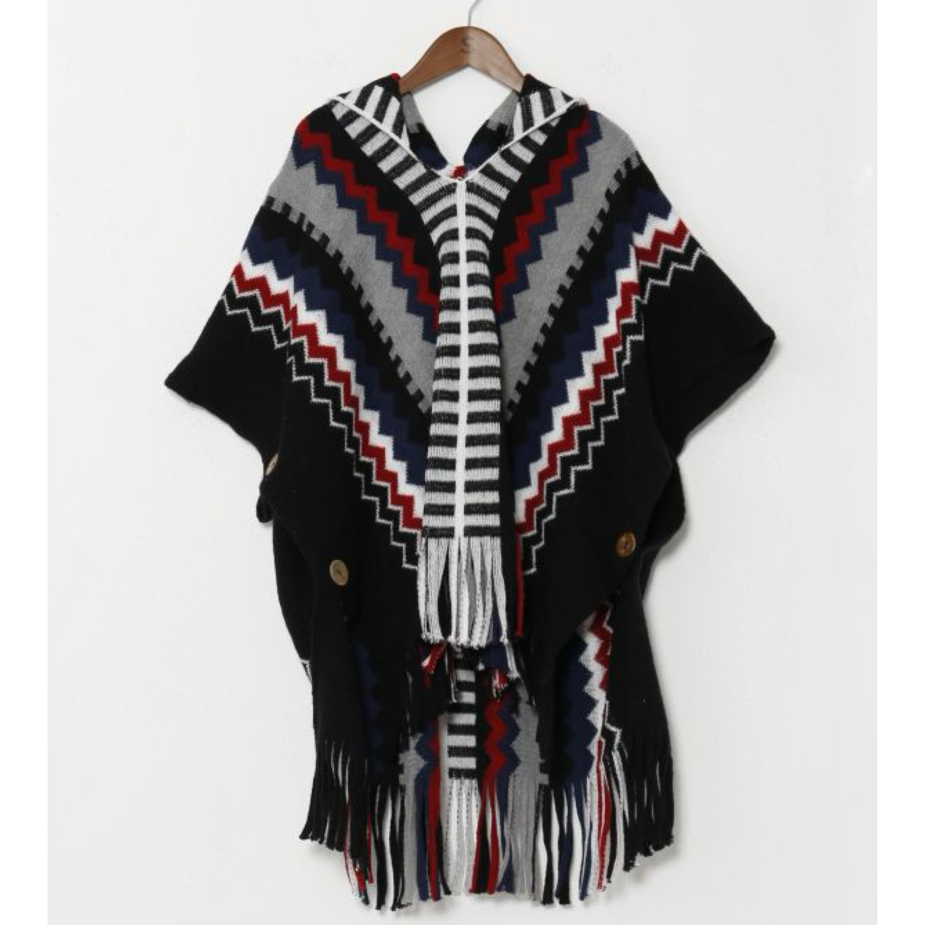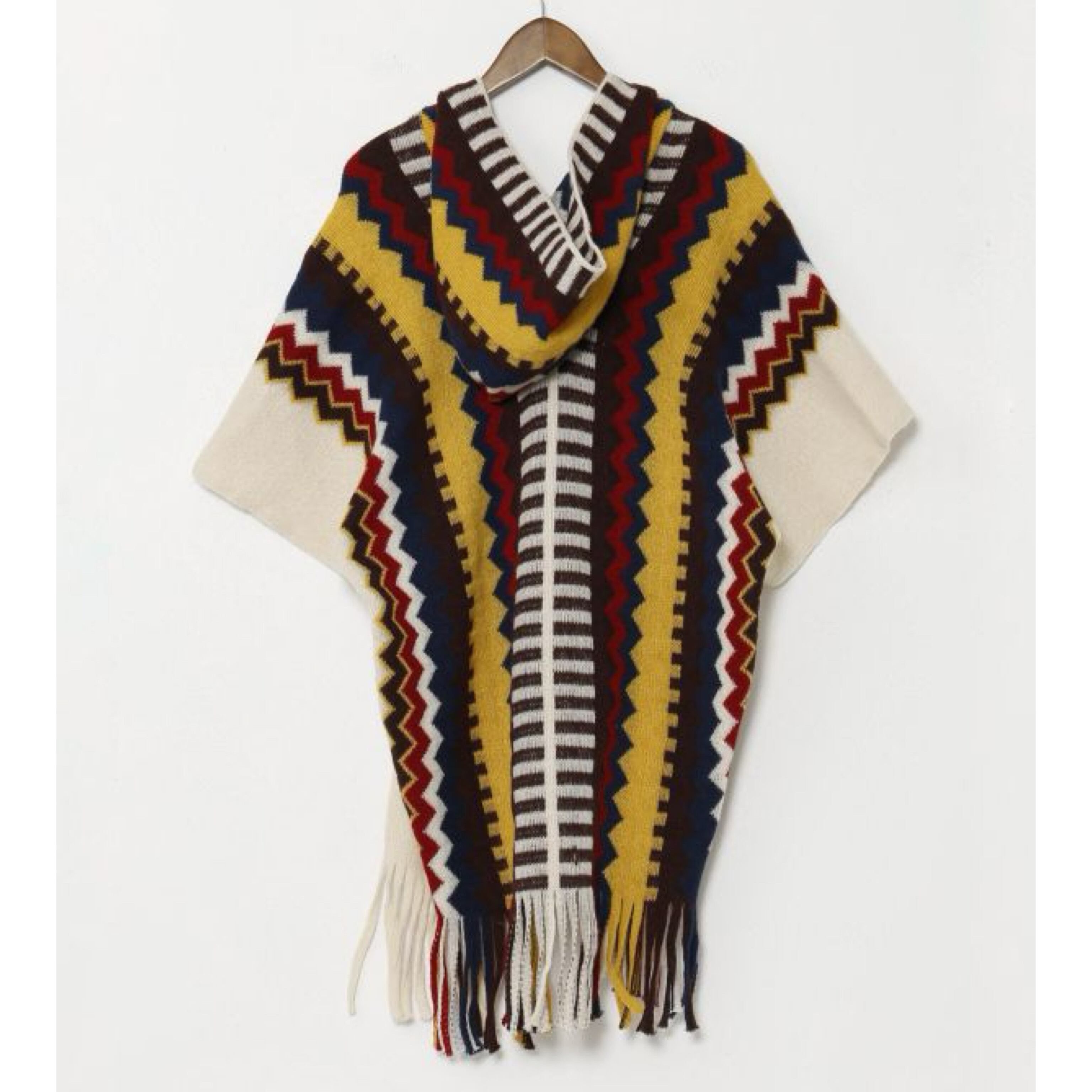 大胆な配色と色使いが目を惹くポンチョ。