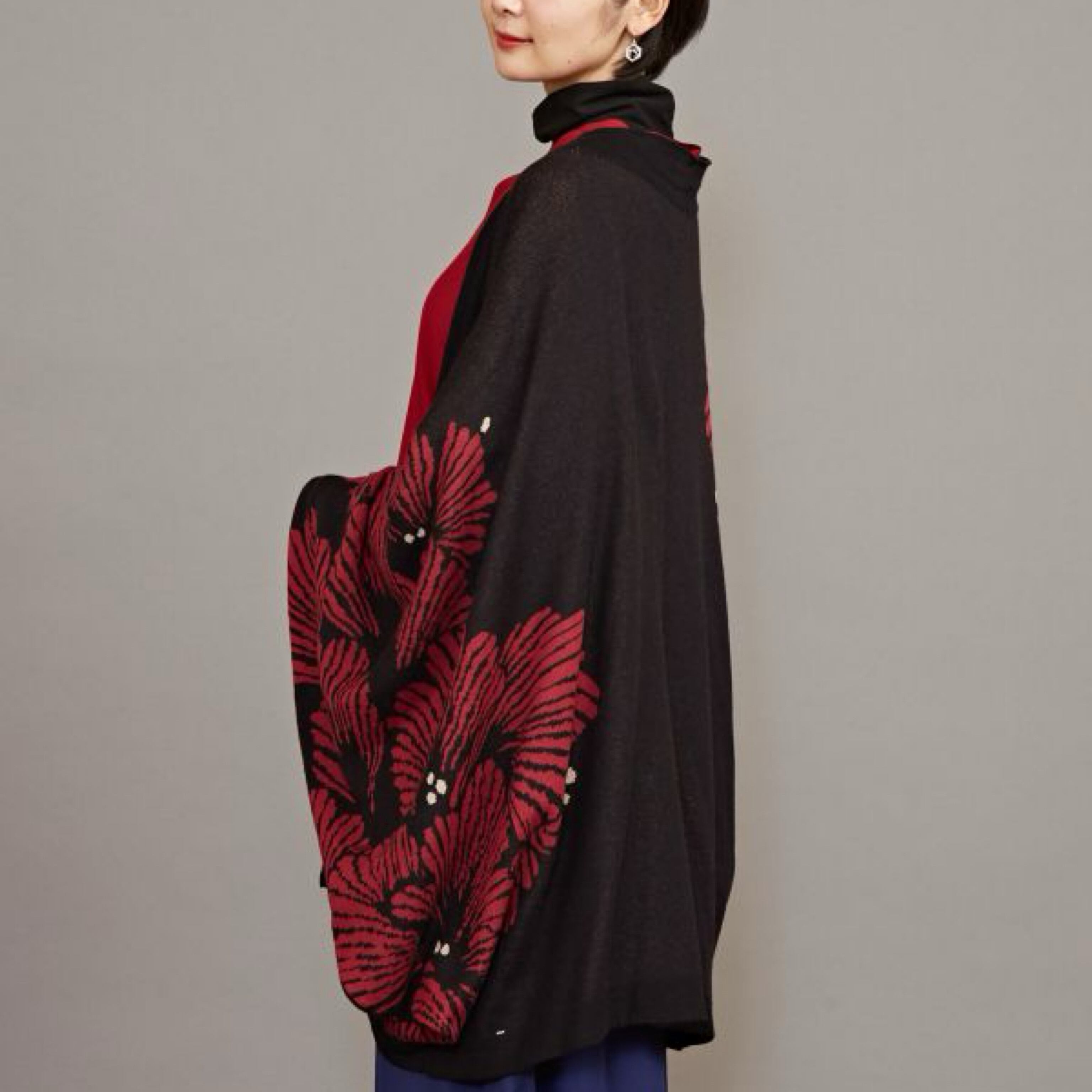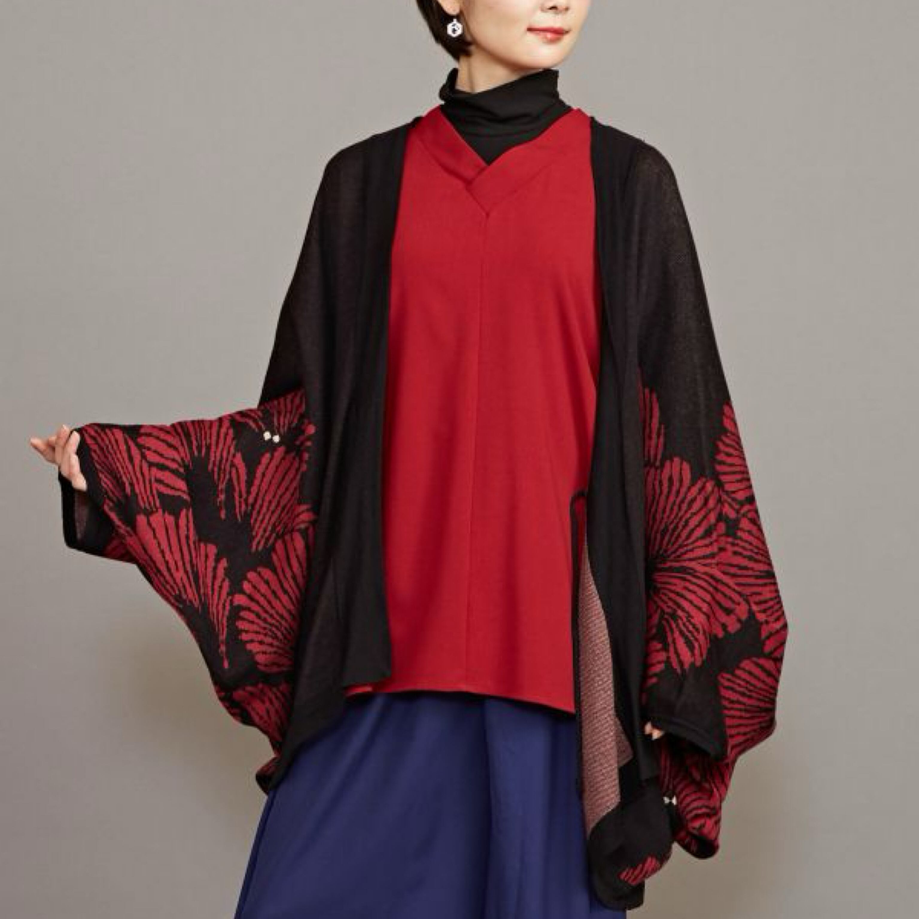 大胆に描かれた銀杏柄が目を惹くニットの羽織。
